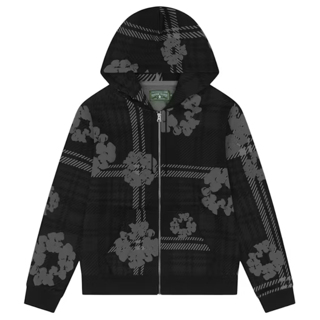 Denim Tears Plaid Cotton Wreath Zip Hoodie Black