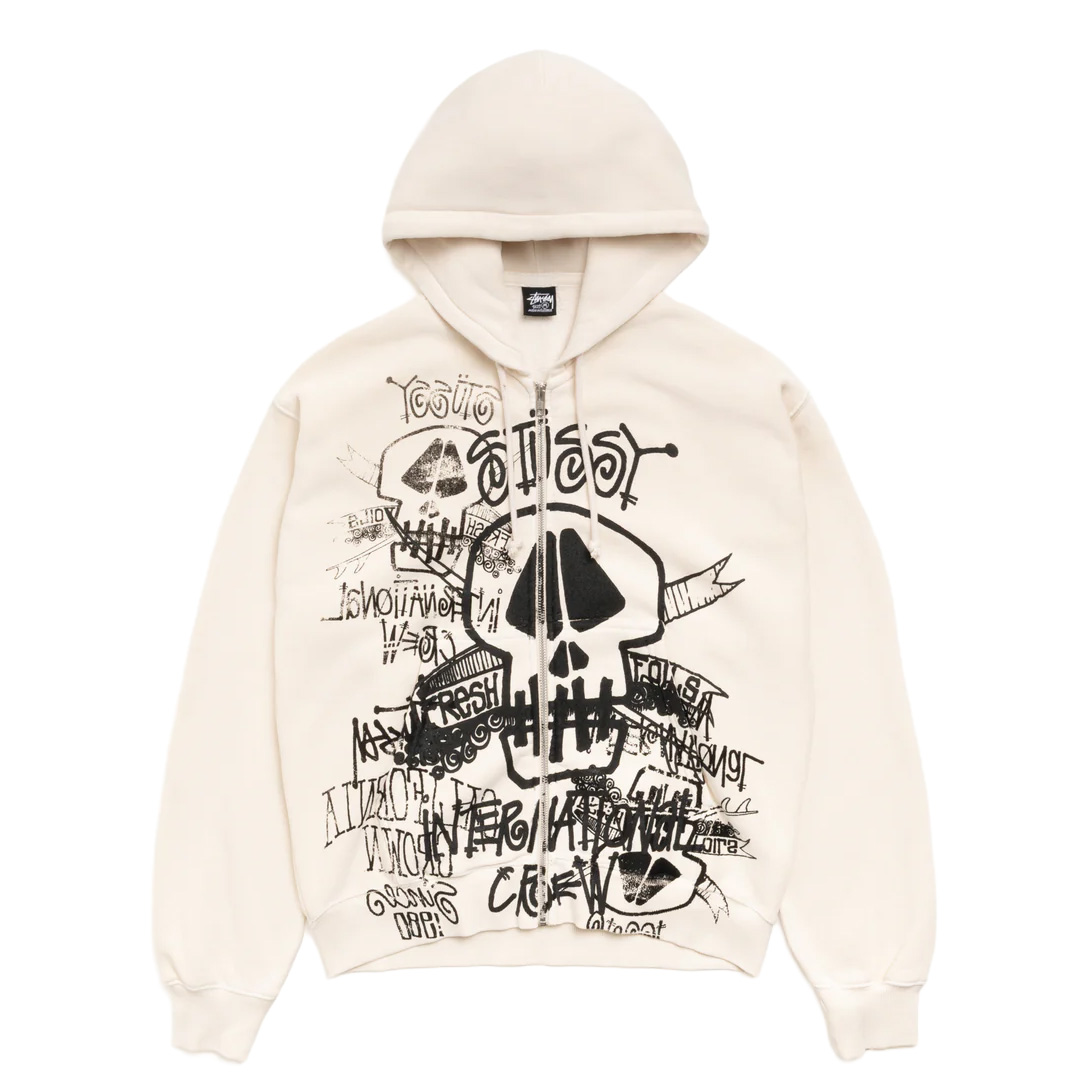 Stussy Skulls Zip Hoodie Pigment Dyed Bone