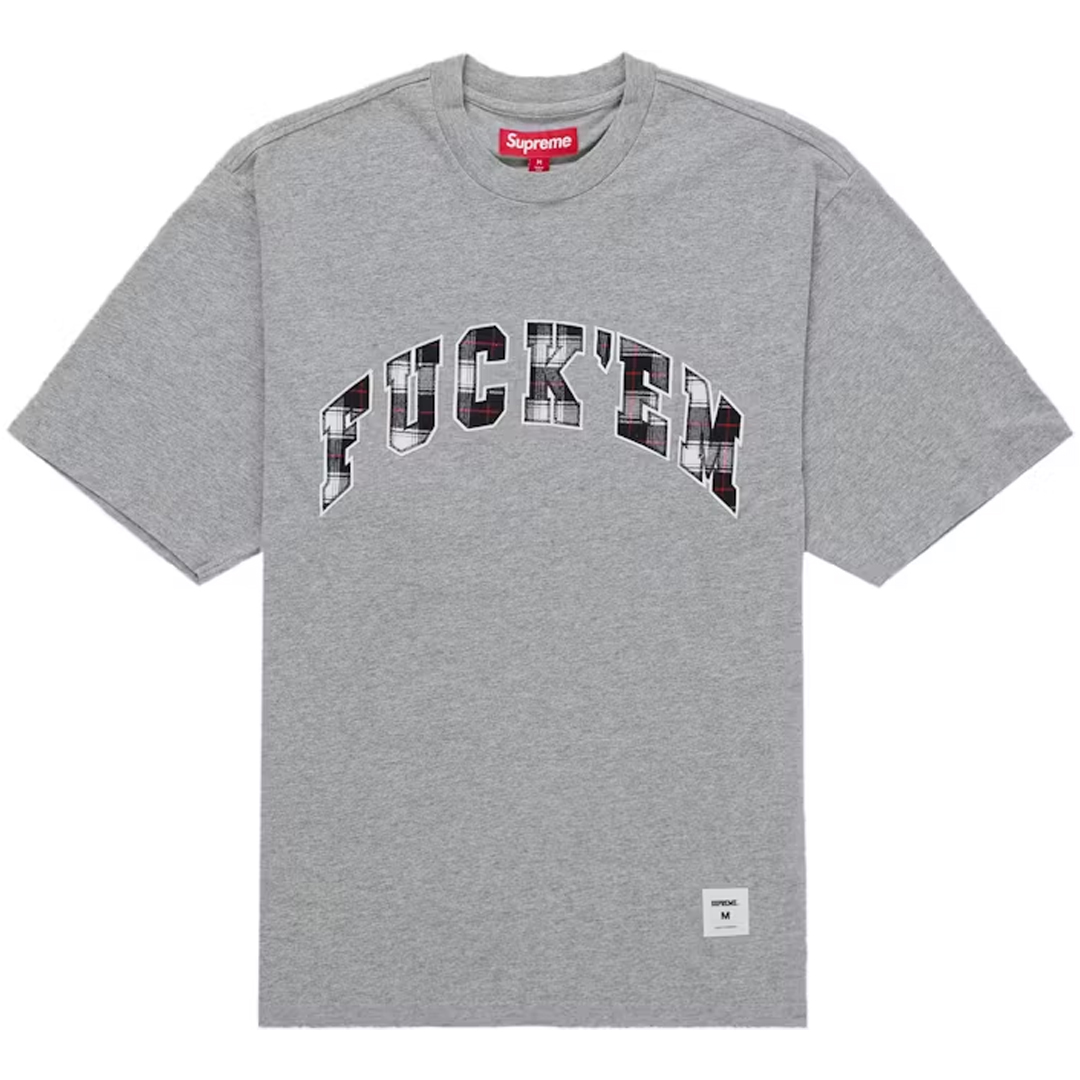 Supreme Fuck Em Plaid S/S Tee Heather Grey