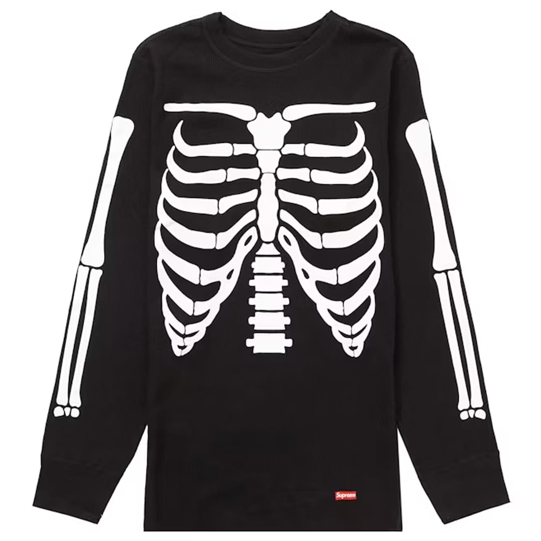 Supreme Hanes Bones Thermal Crew (1 Pack) Black to połączenie klasycznej funkcjonalności i niepodrabialnego streetwearowego charakteru, które razem tworzą jeden z najbardziej rozpoznawalnych elementów współpracy Supreme x Hanes. Czerń tego termicznego longsleeva nadaje mu ponadczasowy, surowy vibe, a kontrastowy wzór Bones biegnący wzdłuż rękawów wprowadza graficzny akcent, który przyciąga wzrok i dodaje całości drapieżności. Wykonany z miękkiej, oddychającej bawełny o strukturze waffle, model oferuje idealny balans między komfortem a wytrzymałością – materiał dopasowuje się do sylwetki, jednocześnie zachowując luźny, naturalny flow. To niskoprofilowe, ale wyraziste ubranie, które bez trudu wpisuje się w codzienne stylizacje – od klasycznych jeansów po spodnie cargo i sneakersy lifestyle. Supreme ponownie udowadnia, że potrafi wynieść prosty element garderoby na poziom kultowego designu, w którym każdy detal ma znaczenie. Czarne tło podkreśla symbolikę projektu Bones – subtelne nawiązanie do surowej estetyki skate’u i nowojorskich ulic, które od zawsze stanowią serce marki. Ten model to nie tylko praktyczny longsleeve na chłodniejsze dni, ale też wyraz modowego minimalizmu w najlepszym wydaniu. W świecie, gdzie klasyka spotyka nowoczesność, Supreme Hanes Bones Thermal Crew Black zajmuje miejsce szczególne – jako ponadczasowy must-have dla miłośników autentycznego streetwearu i minimalistycznego stylu z charakterem.
